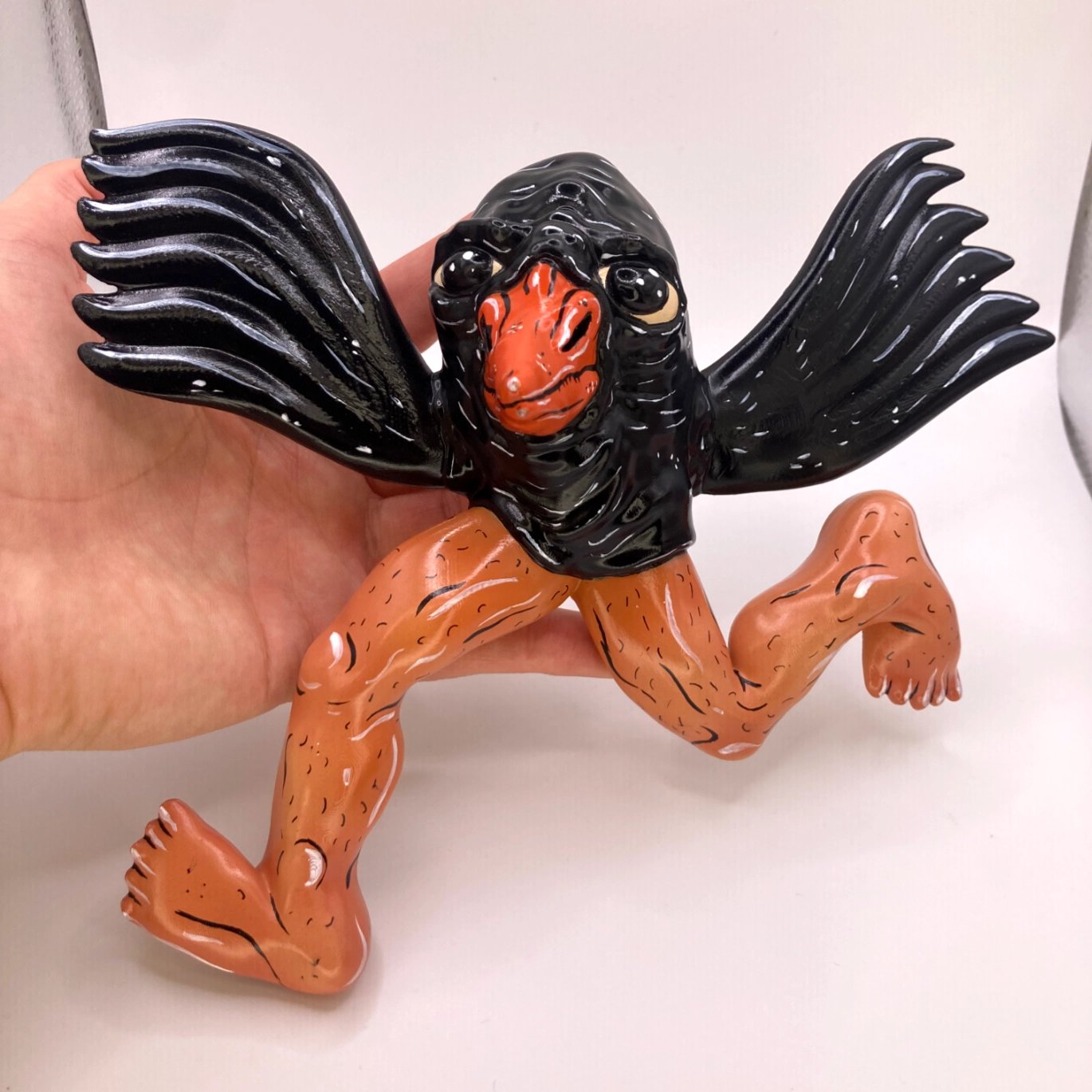The creatures are 3D sculpted and then printed in PLA, making them very light and strong. After priming, the model is airbrushed, hand-painted, and finally protected with a gloss varnish.