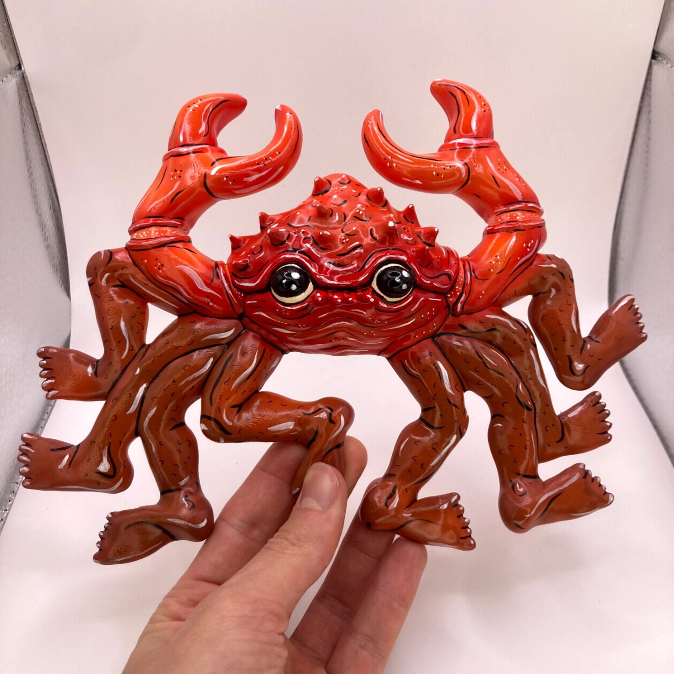 The creatures are 3D sculpted and then printed in PLA, making them very light and strong. After priming, the model is airbrushed, hand-painted, and finally protected with a gloss varnish.