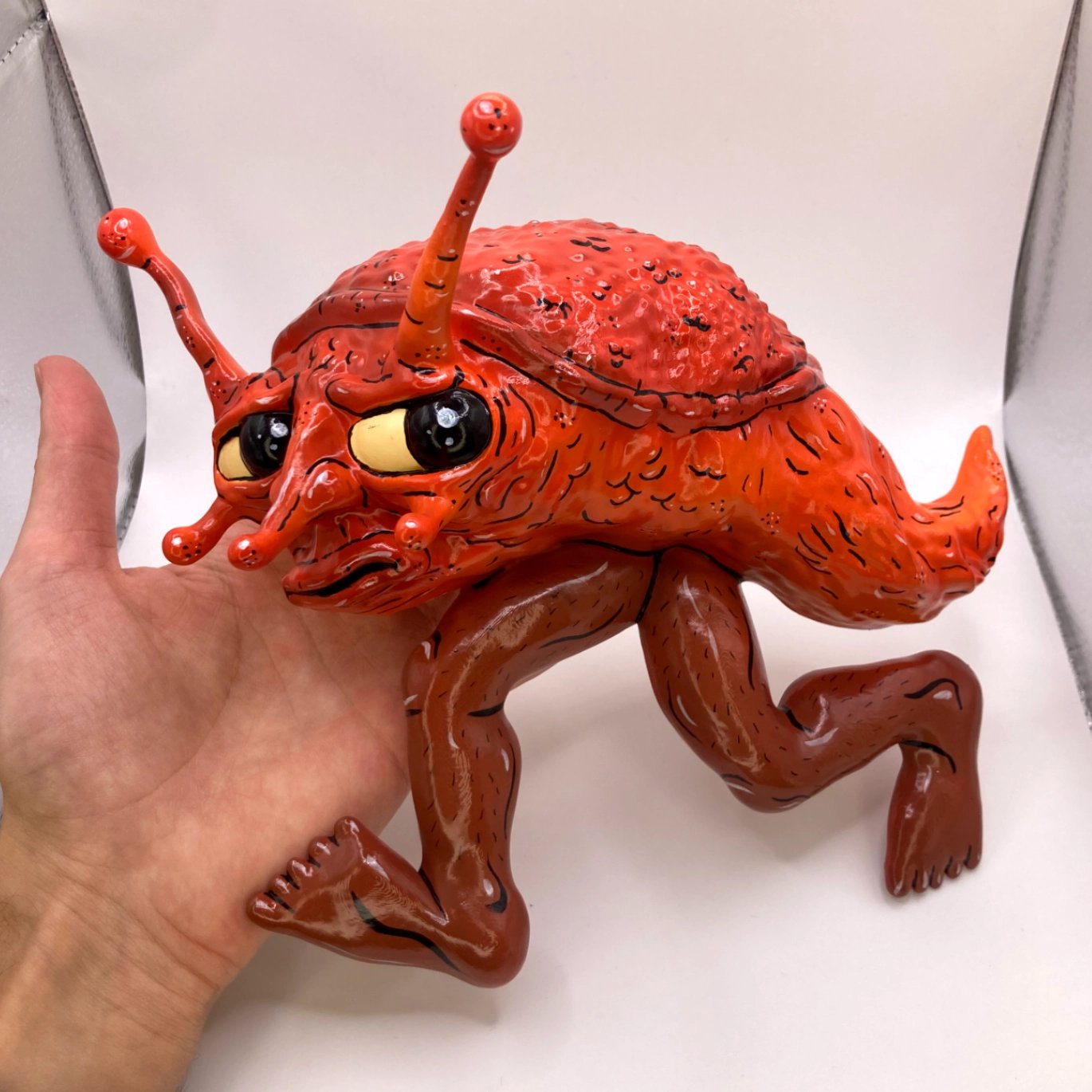 The creatures are 3D sculpted and then printed in PLA, making them very light and strong. After priming, the model is airbrushed, hand-painted, and finally protected with a gloss varnish.